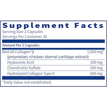 BioCell Collagen II® (hydrolyzed chicken collagen type II, providing Chondroitin Sulfate 100 mg and Hyaluronic Acid 50 mg)500 mg