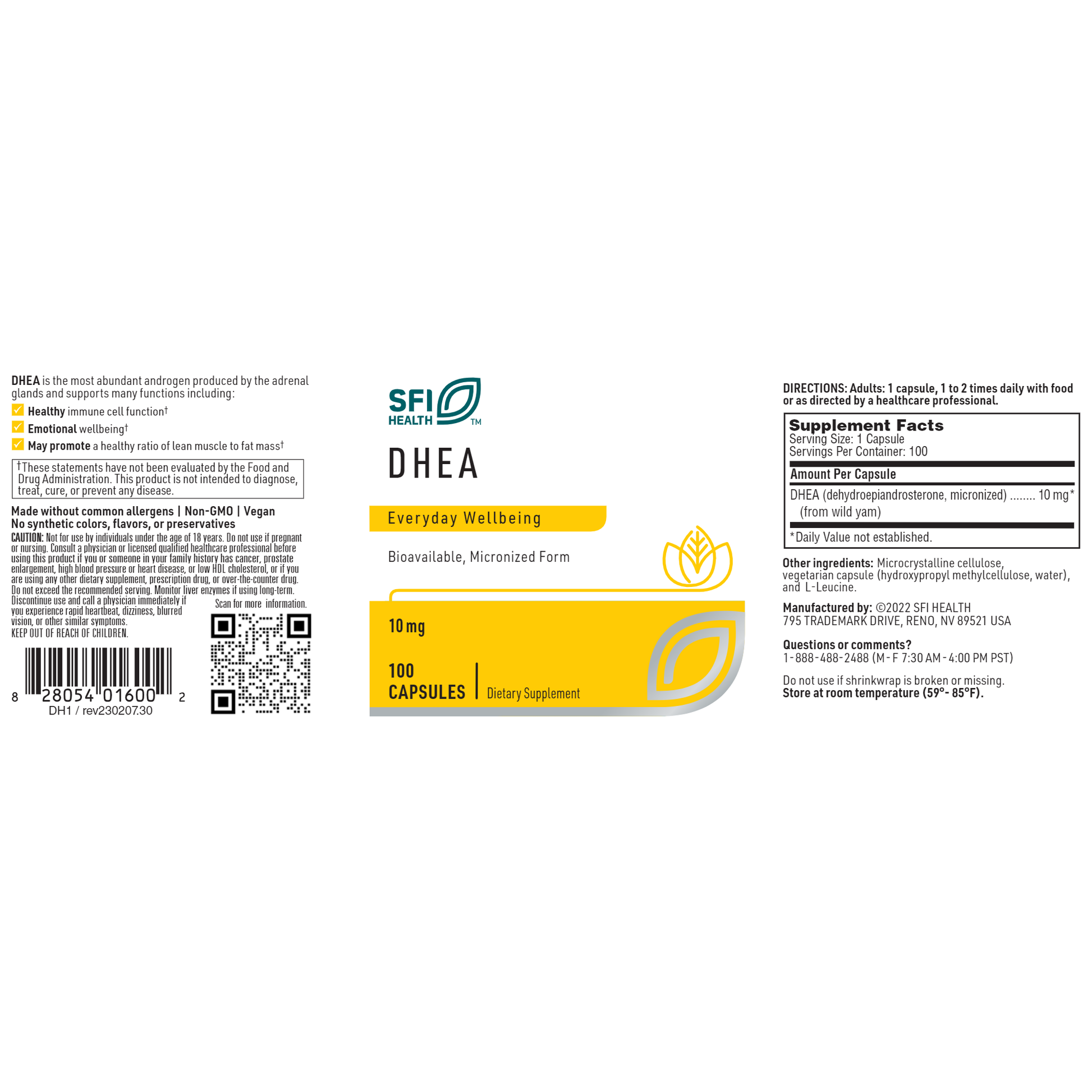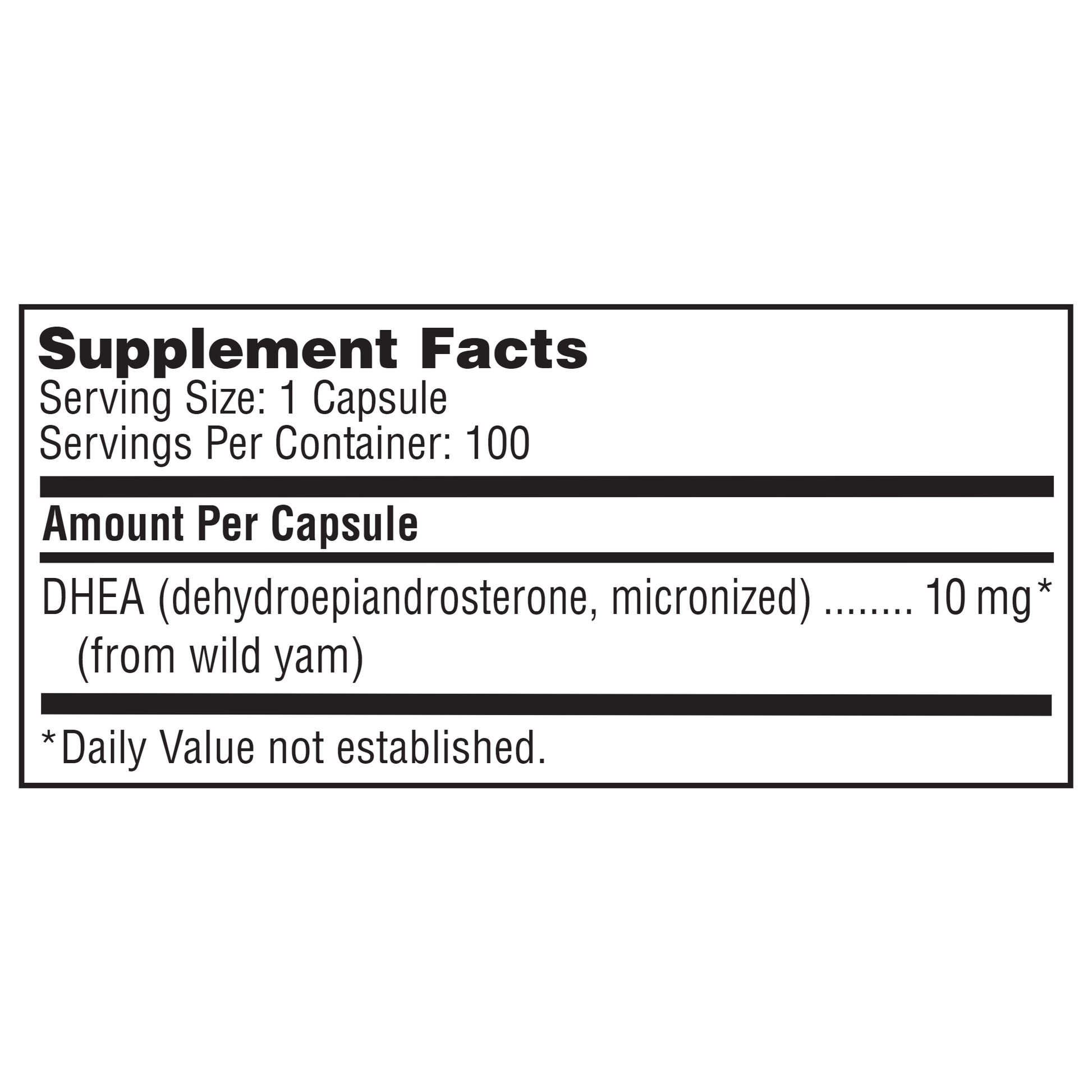 DHEA (dehydroepiandrosterone) that has been micronized to a very small particle size to facilitate absorption is provided in three potency options: 10 mg, 25 mg, and 50 mg.
