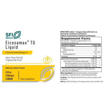 Eicosamax TG Liquid supplies 1,400 mg of EPA and 925 mg of DHA per teaspoon.