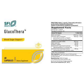 GlucoThera™ augments the actions of MultiThera® multivitamin formulas by supplying a powerful mix of nutrients and botanicals that efficiently support normal glucose metabolism, structure and function of basement membranes such as nerve tissue, and insulin function.*