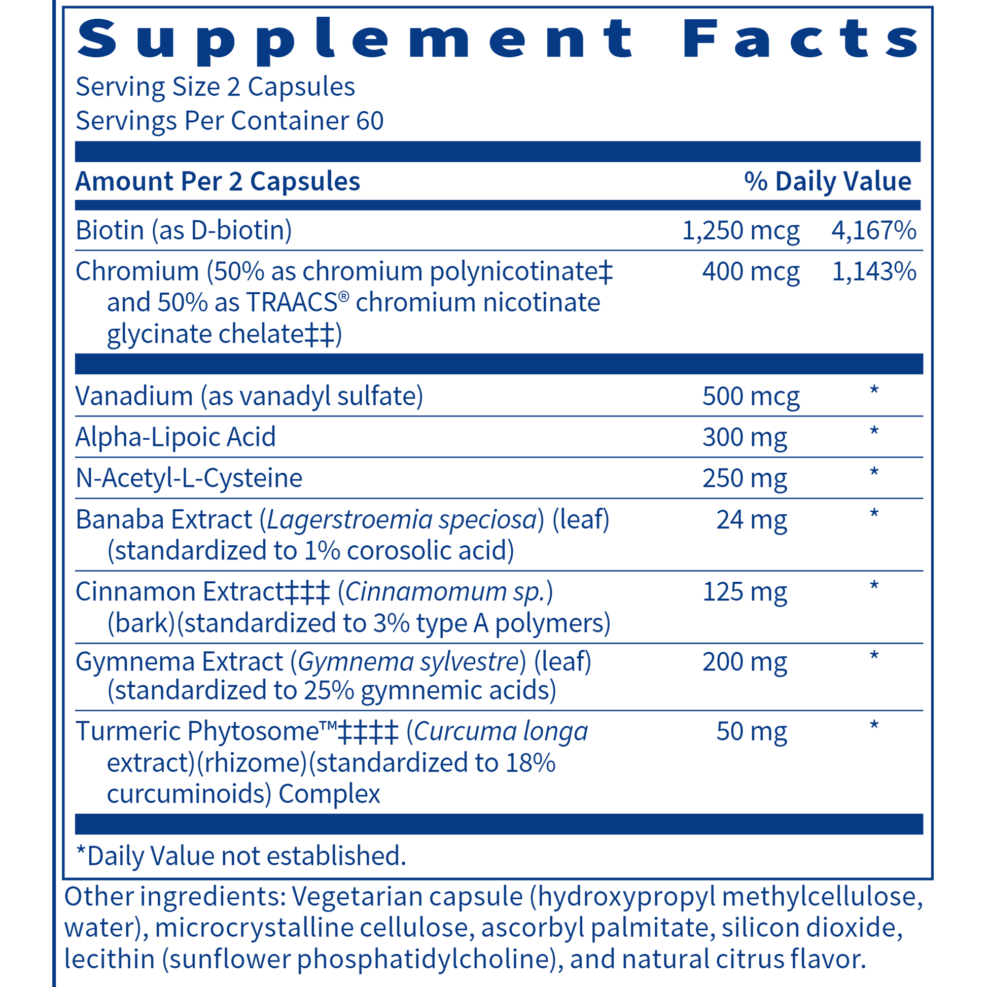 Supplies all of the nutrients in GlucoThera™ with the addition of cinnamon and turmeric extracts and twice the alpha-lipoic acid. Cinnamon supports insulin function.* Meriva® turmeric phytosome contains highly bioavailable curcumin, a free radical scavenger shown to slow AGE formation (glycation) and cross-linking of collagen.* Recommended for those needing maximum support.