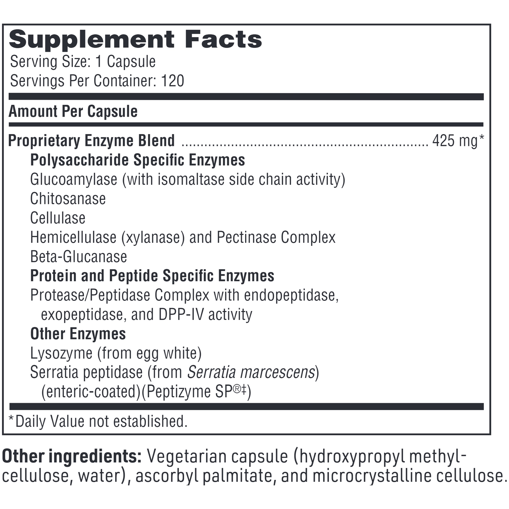 Depending on age and size, 1 capsule, 1 to 4 times daily between meals or as directed by a healthcare professional. The capsules should be taken away from meals to maximize the enzyme effects.