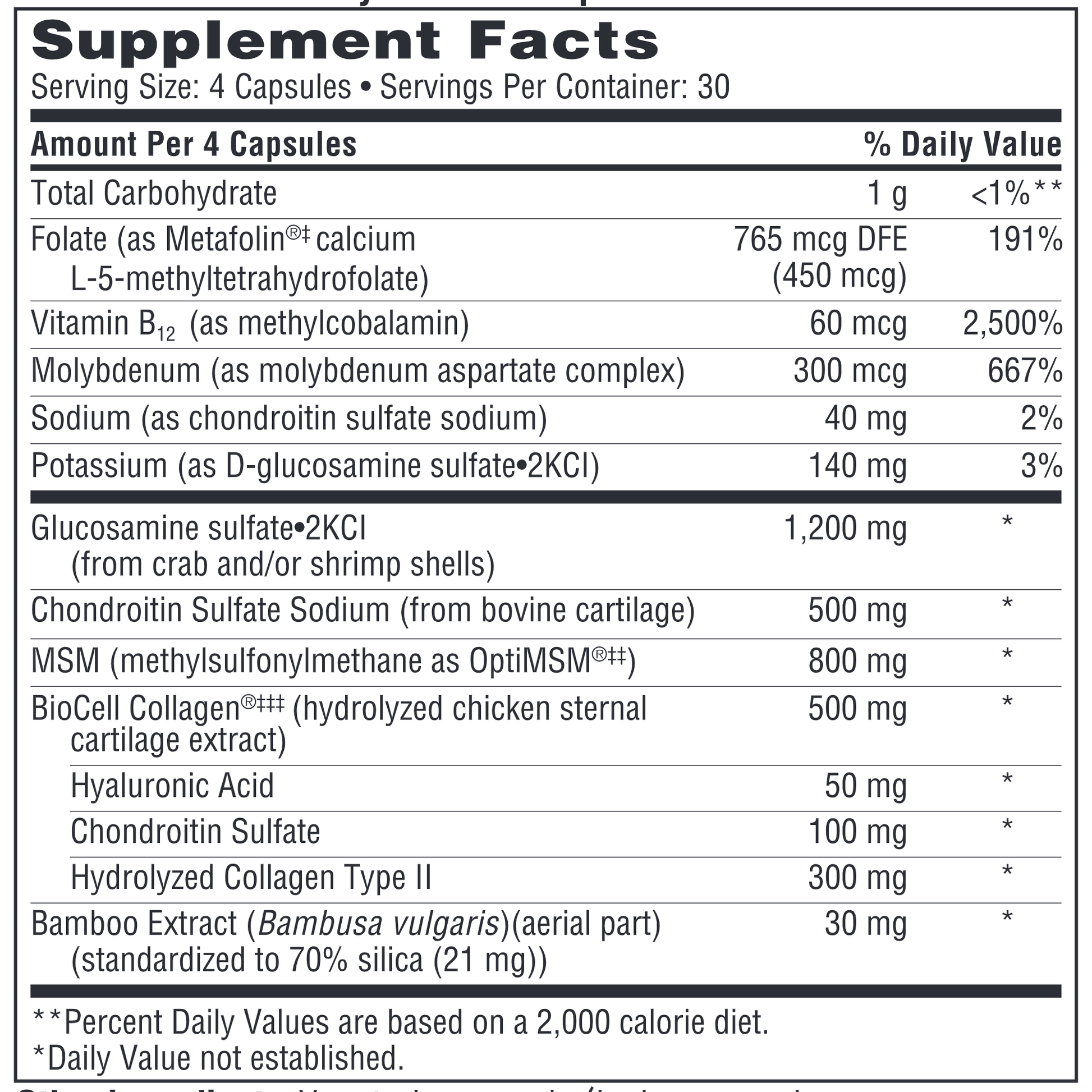 Sodium (from chondroitin sulfate sodium)Amount Per Serving:40 mgDaily Value:2%