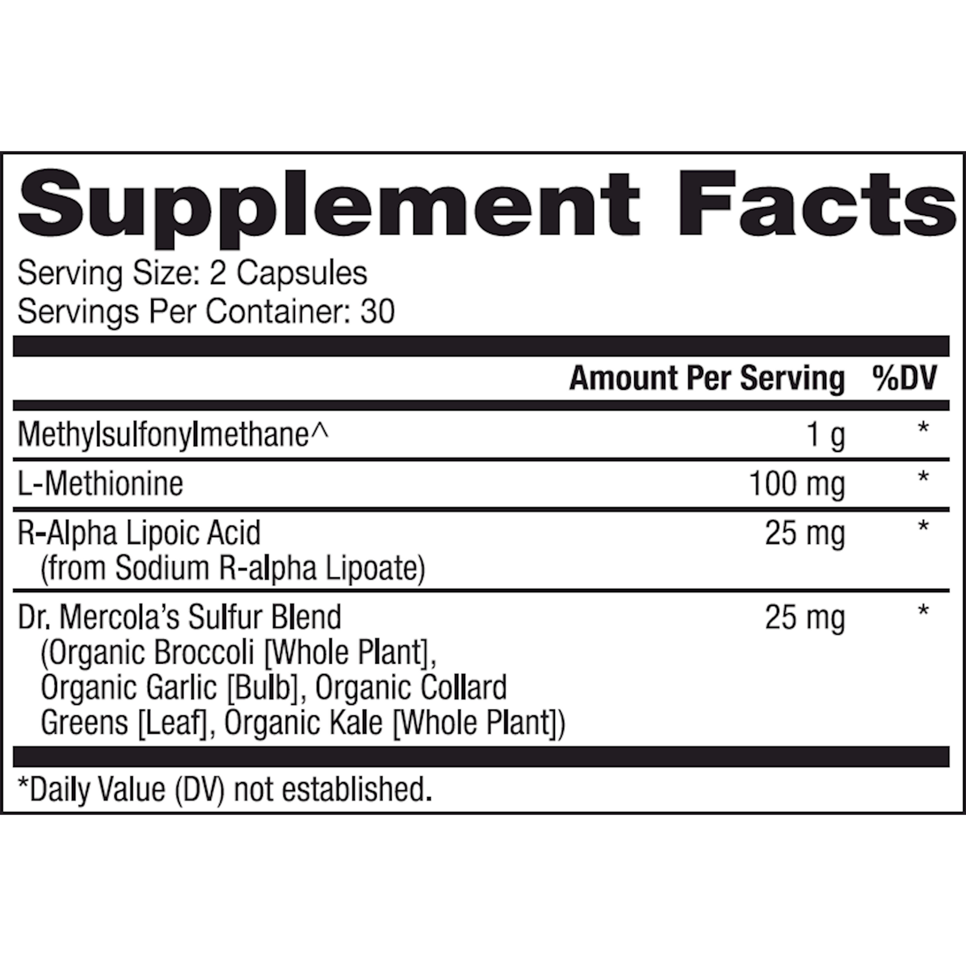 • OptiMSM® (Methylsulfonylmethane) – Dr. Mercola only wanted the best MSM ingredient in their sulfur formula and believe they definitely found it with OptiMSM. Due to the manufacturer’s 4-stage rigorous distillation process, consistency and purity became non-issues.