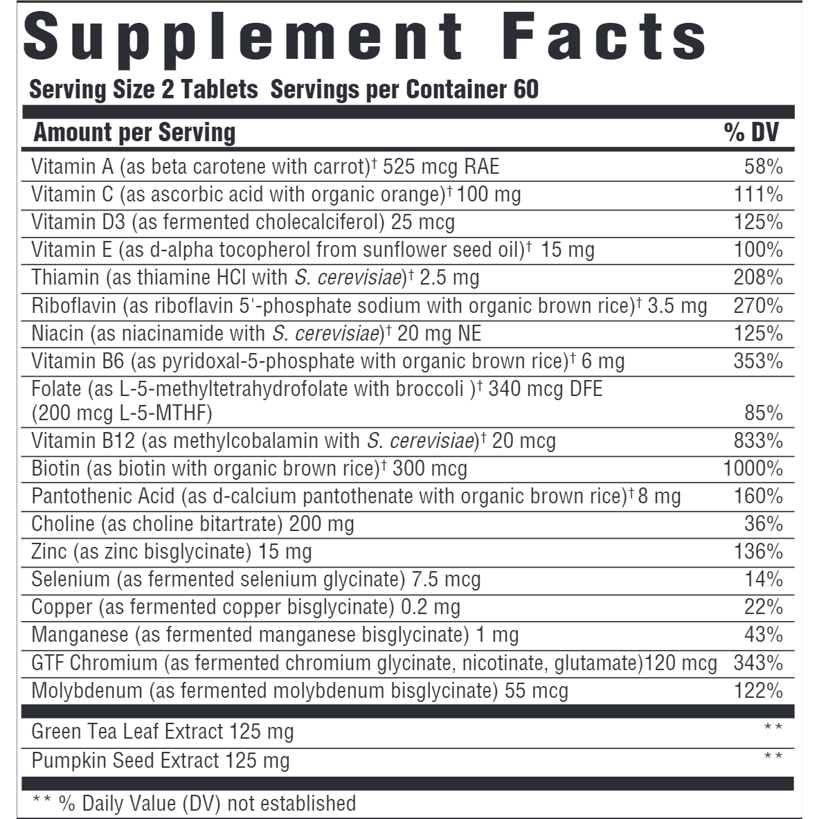 MegaFood® Multi for Men 55+ is formulated by award-winning integrative medical physician, Tieraona Low Dog, M.D., specifically for men over the age of 55 who want a multi without iron, iodine or vitamin K (for those required to avoid these nutrients) that supports their optimal health and wellbeing.* Megafood's tablets can taken on an empty stomach, any time of the day and are crafted with a host of supportive FoodState Nutrients™, including 1000 IU (25 mcg) of vitamin D to support healthy bones,* choline for healthy memory and cognitive function,* pumpkin seed and green tea extract, and zinc for healthy prostate function.*