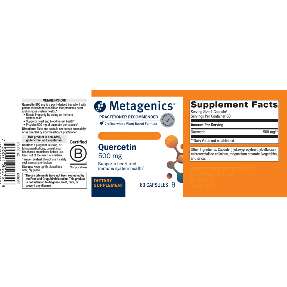 Quercetin 500 features 500 mg of quercetin in one capsule to promote a healthy immune response, support cardiovascular and endothelial health, and support antioxidant status.*