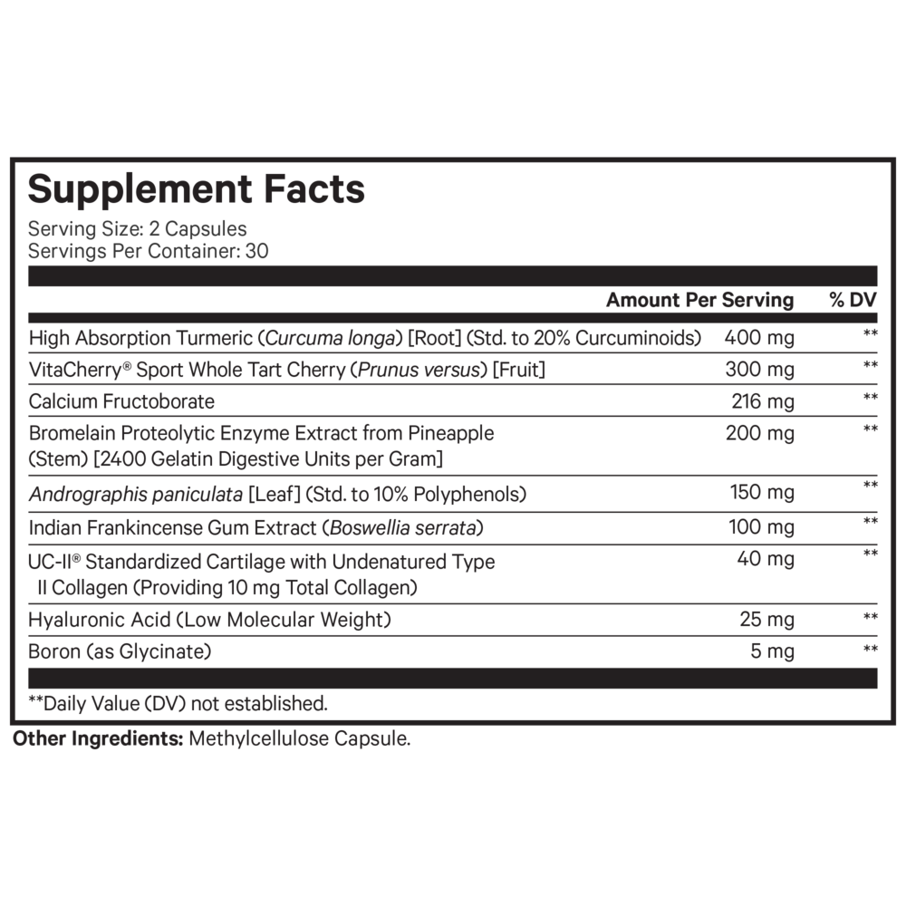 Codeage Supreme Joint Health offers an innovative joint care formula that includes patented ingredients such as UC-II standardized cartilage with 10 mg of undenatured type 2 collagen and whole Montmorency tart cherries from VitaCherry Sports athletes technology.